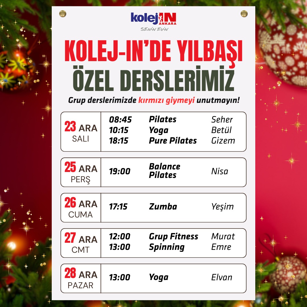 🥳 Yılbaşı özel ders programımızla hareket, motivasyon ve eğlence bir arada!